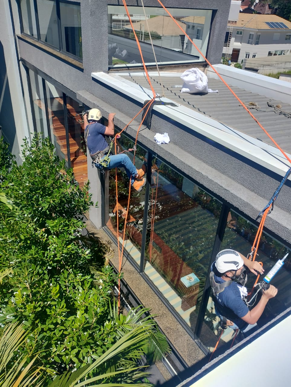 Limpeza profissional de vidros e fachadas em prédios comerciais e residenciais de grande porte.